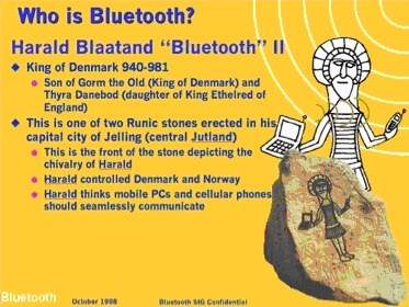 Kardach’s reasoning was as follows: Just like Harald had united Scandinavia back in the day, Bluetooth would unite the wireless standards of the late 1990s. To really drive the point home, Kardach put together exactly the kind of wacky PowerPoint slide we now associate with the 1990s, when flashy colors and cartoonish layouts took precedence over readability: