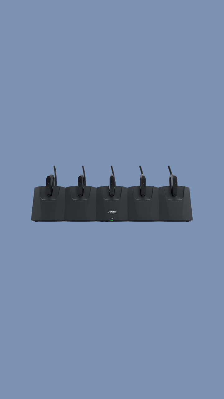 Bestimmte Dinge sind einfach für Teamarbeit gemacht – genau wie manche Sportarten. Mit der Perform Ladestation kannst du bis zu fünf Headsets gleichzeitig aufladen und aktualisieren. Mit dieser Ladestation gibt es keinen Kabelsalat mehr und das Aufladen wir einfach und übersichtlich. So steht dir immer ein aufgeladenes Headset zur Verfügung, wenn du es brauchst. Und nach dem Endspurt einer hektischen Schicht können du und deine Teammitglieder die Headsets einfach zum Aufladen wieder in die Basisstation stellen, damit ihr in der nächsten Runde wieder durchstarten könnt.