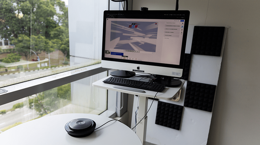 At first, the team made use of the built-in microphone and camera on their laptops, but audio and video quality was often compromised. The team attempted to enhance audio quality by introducing external headsets for the hosts. However, a drawback emerged as each laptop could only connect to one headset – so whenever two hosts worked together, this prevented both hosts from speaking at the same time. The moderator also used consumer-grade wired headphones during the live show, but sometimes wires became tangled, requiring the moderator to remove the headphones to sort out.