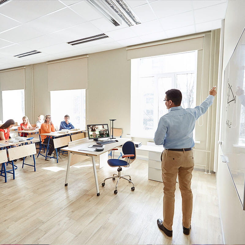 Aujourd'hui, l'enseignement n'est plus associé à un lieu. Dans ce nouveau contexte, professeurs et élèves ne sont pas les seuls à trouver un intérêt à s'équiper de technologies flexibles. Avec les solutions innovantes Jabra, les établissements d’enseignement peuvent partager les informations importantes et organiser des réunions virtuelles avec les parents en fonction des besoins de chacun.