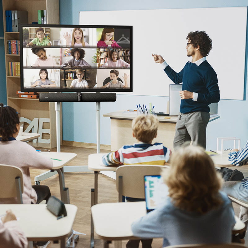 Chez Jabra, nous proposons des solutions de très haute qualité conçues pour faciliter l'apprentissage – de partout. Nos solutions vidéo intelligentes enregistrent, diffusent et compilent les contenus éducatifs sur n'importe quelle plateforme éducative pour simplifier l'apprentissage collaboratif.