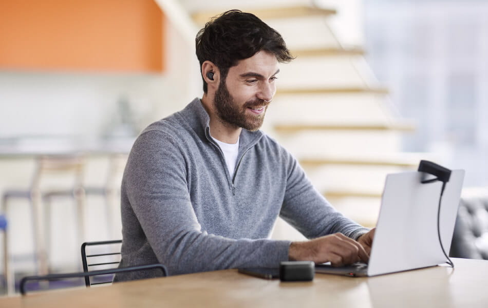 the true wireless earbud form factor, Jabra developed the Evolve2 Buds to