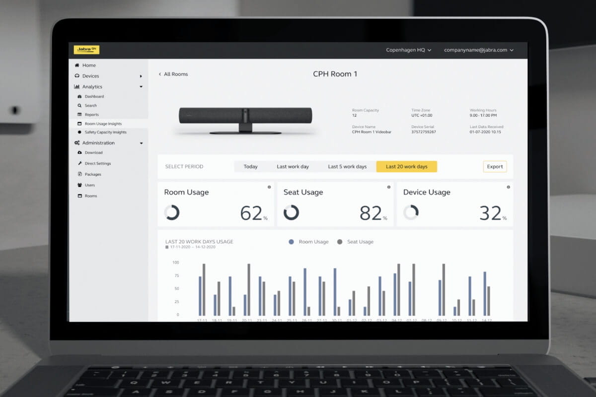 I dati visivi in Jabra Xpress ti consentono di analizzare la cronologia dei meeting precedenti e intraprendere azioni basate sui dati laddove necessario.
