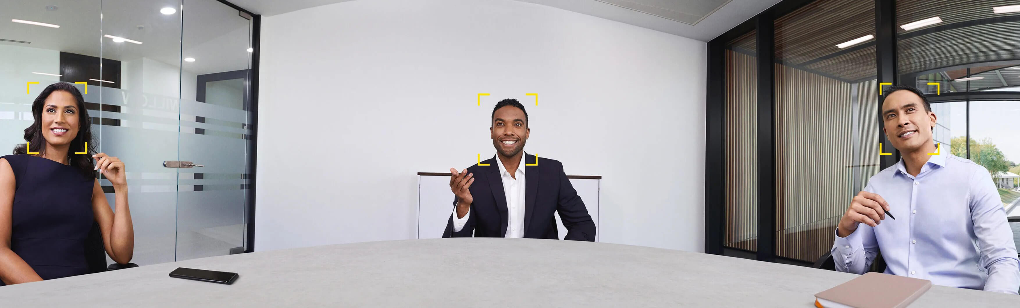 Ti piacerebbe se il tuo dispositivo per videoconferenze in sala potesse rilevare automaticamente chi sta parlando e regolasse l'immagine in modo autonomo per focalizzarsi su di loro, proprio come farebbe il tuo cervello se fossi presente nella sala, riorientando il tuo sguardo?