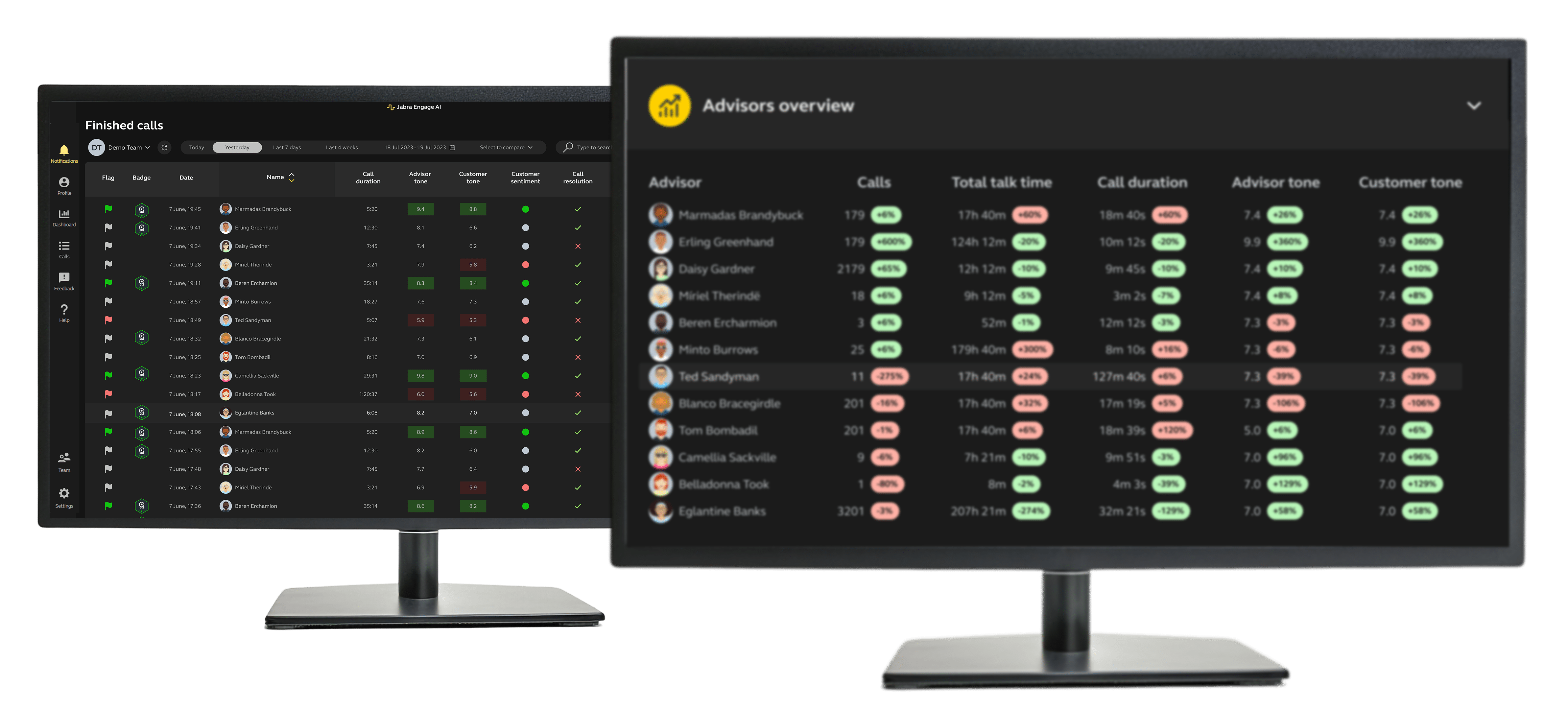 Önemli olan ne söylediğiniz değil, nasıl söylediğinizdir. Engage AI, aramanın her iki ucundaki tonu dinleyerek ses kalıplarını ve enerji değişimlerini gerçek zamanlı olarak algılar. Temsilciler canlı sonuçları eğlenceli, basit ve renk kodlu bir ekranda görebilir. Ton değiştiğinde uyarı gönderilir, bu sayede görüşmeyi doğru rotada tutabilirler.