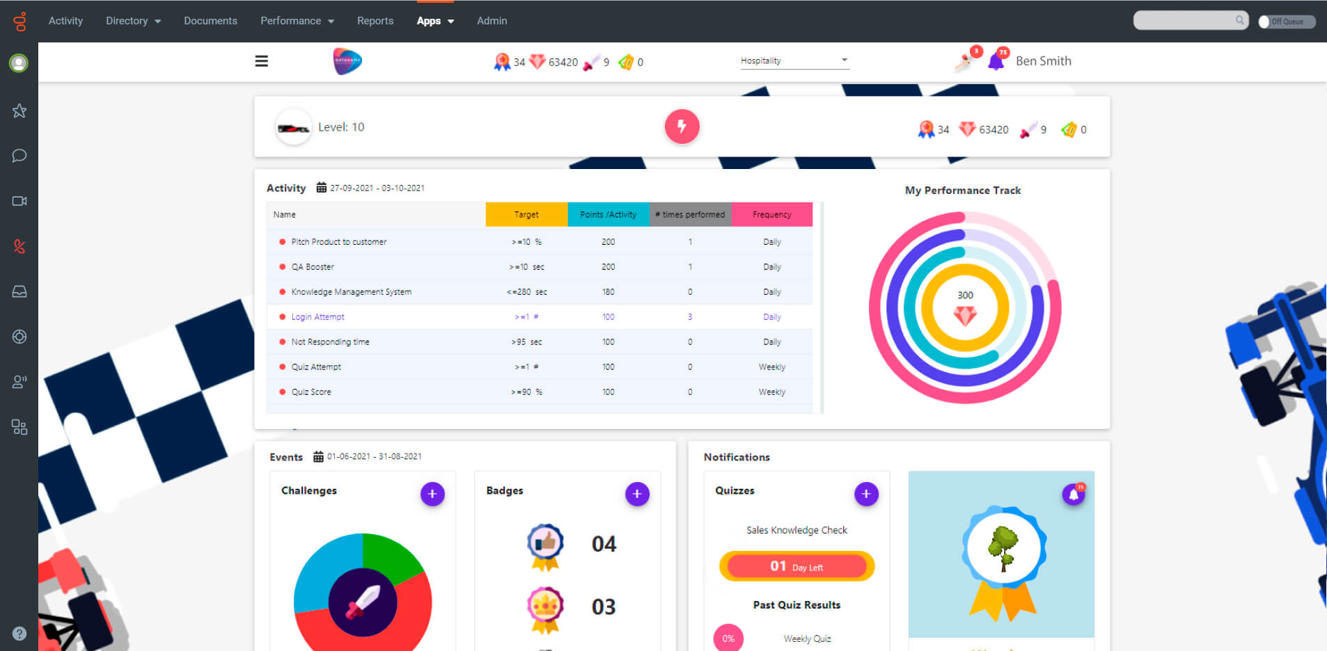 The latest gamification techniques enables you to design specific incentives and challenges to improve individual and team productivity, to build an engaged and high-performing work culture.