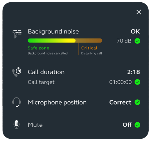 Engage+ delivers live guidance on factors affecting your customer’s call experience, including background noise, silence, and interruptions. 1