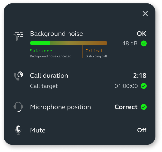 But they do have to meet us halfway and position the mic in the right place. That’s why we added the microphone position feature in Engage+, to let agents know when something isn’t quite lining up*.