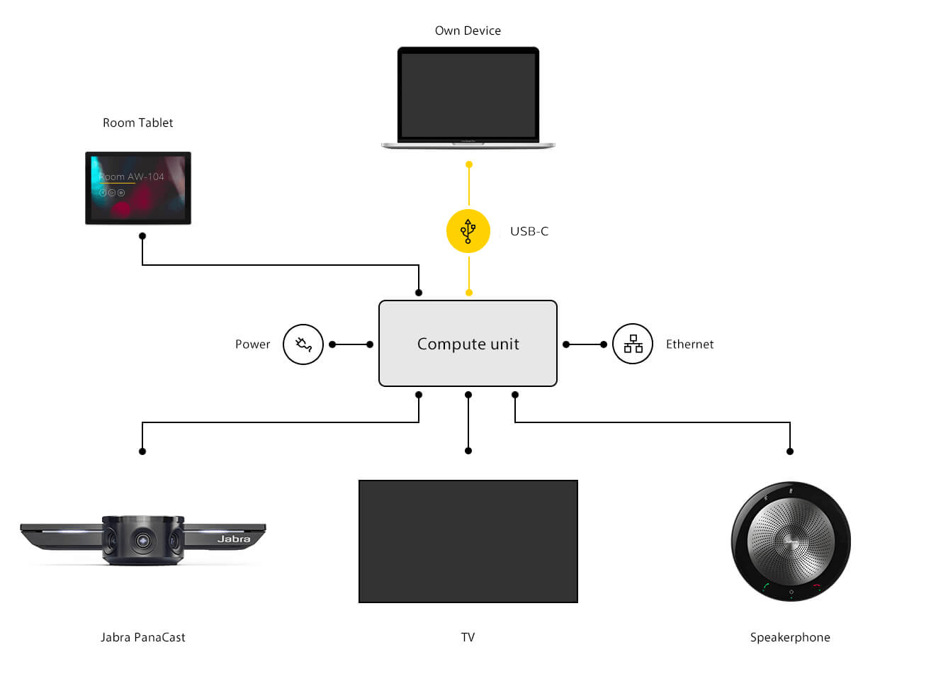 如果您要部署Zoom Room,Microsoft Teams Room或類似集成解決方案,只需將Jabra PanaCast插入現有的集線器,擴充埠或電腦裝置即可。