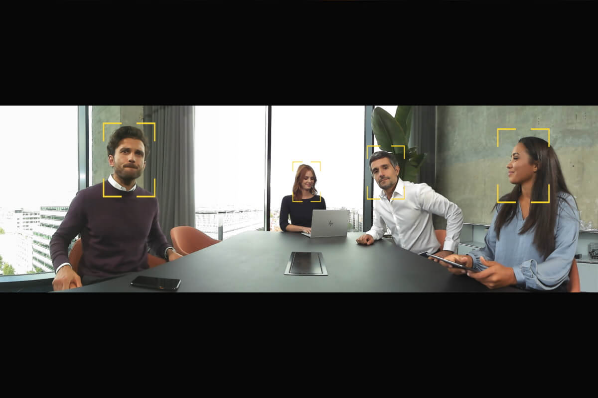 Unsere leistungsstarken Edge-KI-Prozessorchips nutzen eigens entwickelte Algorithmen, um dem Meetingverlauf intuitiv zu folgen. Sie passen den Bildausschnitt in Echtzeit automatisch an und fokussieren auf die sprechende Person.