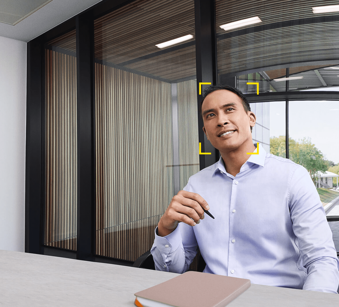 Wir alle wünschen uns Transparenz in Meetings – doch bei der Verwendung intelligenter Kameras in Büros mit Glaswänden oder offenen Meetingbereichen ist zu viel Transparenz nicht immer ideal. Die Personenerkennungs-Technologie in der PanaCast 50 ist so gut, dass sie alle sichtbaren Gesichter im Umfeld identifizieren kann, selbst, wenn sich diese Personen außerhalb des Meeting-Bereichs befinden.