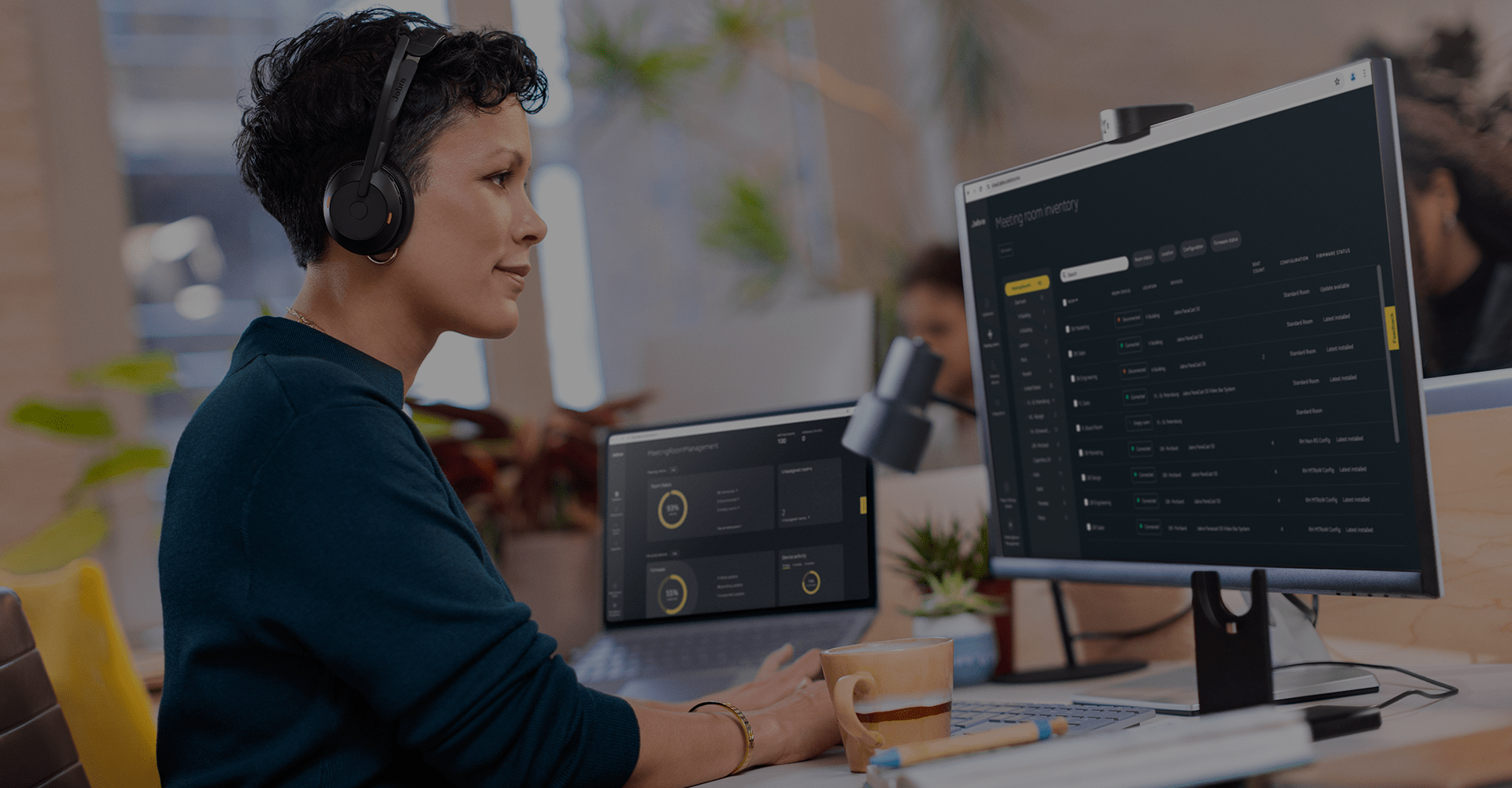 Whether you have a few or many devices, Jabra+ handles them all. View and manage audio devices and video conferencing room solutions globally or by location and tailor IT access to fit your needs, all with one simple tool.