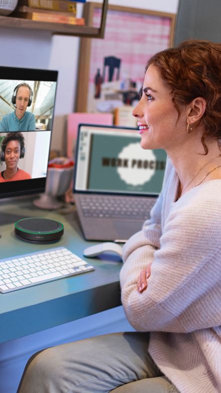 It doesn’t matter whether you’re working from your kitchen table, your office desk or your treehouse, if your speaker works smoothly with your virtual meeting platform, you can get together anywhere.