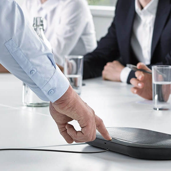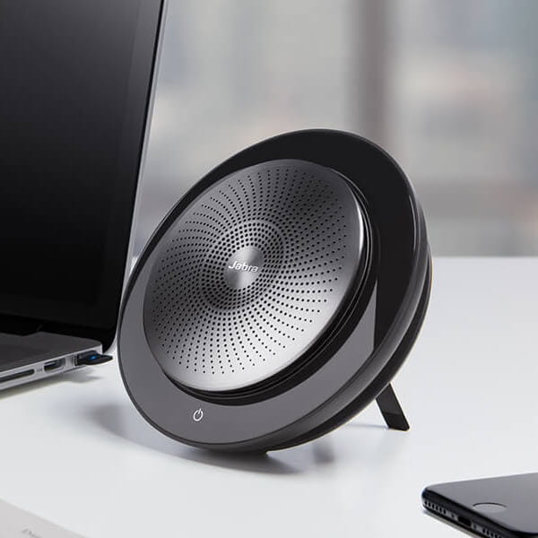 Collaborate the easy way and connect conference calls in seconds with the Jabra Speak series. Intuitive speakerphones that connect via USB and/or Bluetooth® and provide crystal-clear sound. All the conference call capabilities you need, without