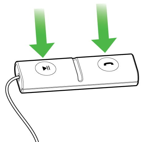 - Paina samanaikaisesti ja pidä painettuna (5 sekuntia) Toisto/tauko-painiketta sekä Vastaa/lopeta-painiketta, kunnes merkkivalo muuttuu valkoiseksi.