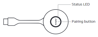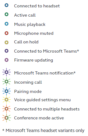 Here is an overview of the Jabra Link 400 DECT adapter and an explanation of the LED colors and corresponding statuses.