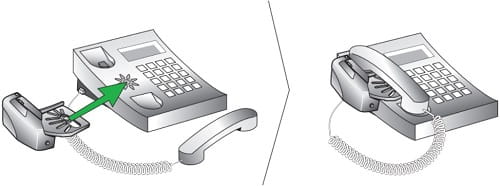 - Disconnect the phone handset from the phone base, and then connect it to the socket that is marked with a handset icon on the headset base.