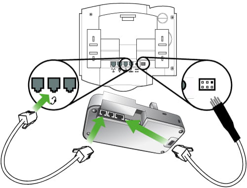 - Plug one end of the EHS adapter into the serial port on the back of your phone.