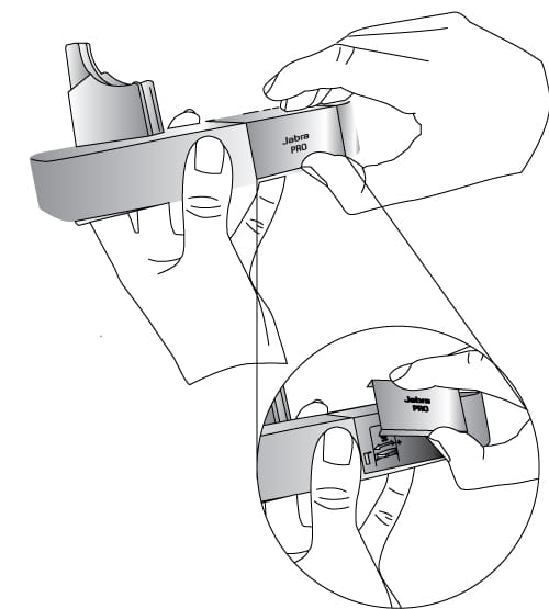 - Connect the RJ-9 connector of the headset to the Jabra base marked with a phone icon, and connect the other end to the back of the phone marked with a headset icon (use cord Jabra 8800-00-75 for SoundPoint IP phone models 320, 321, 330, or 331).