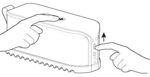 - Press and hold the Volume + button while you turn on your Jabra Solemate.