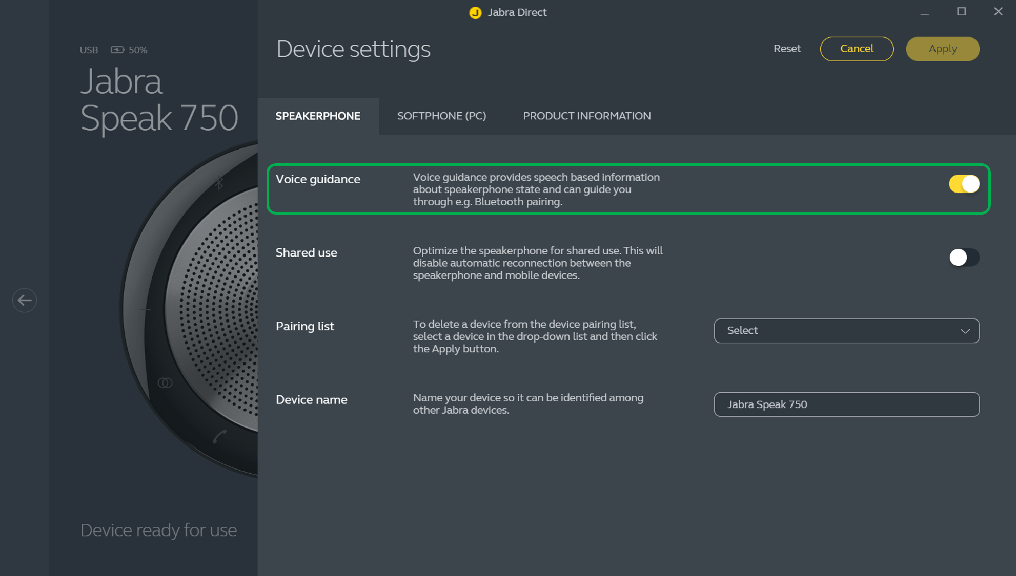 To turn off/on voice guidance using Jabra Direct, follow these steps.
