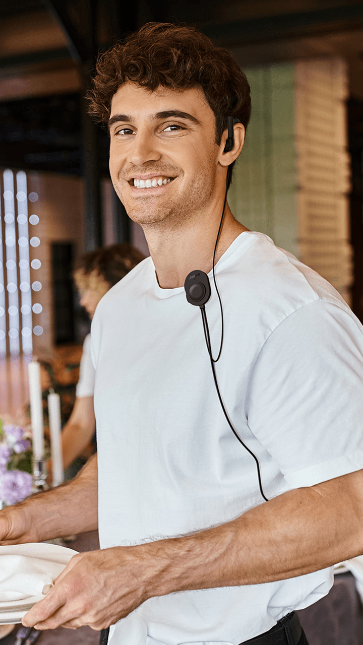 90%の耳にフィットし*、さまざまなユニフォームにしっかりと装着できます