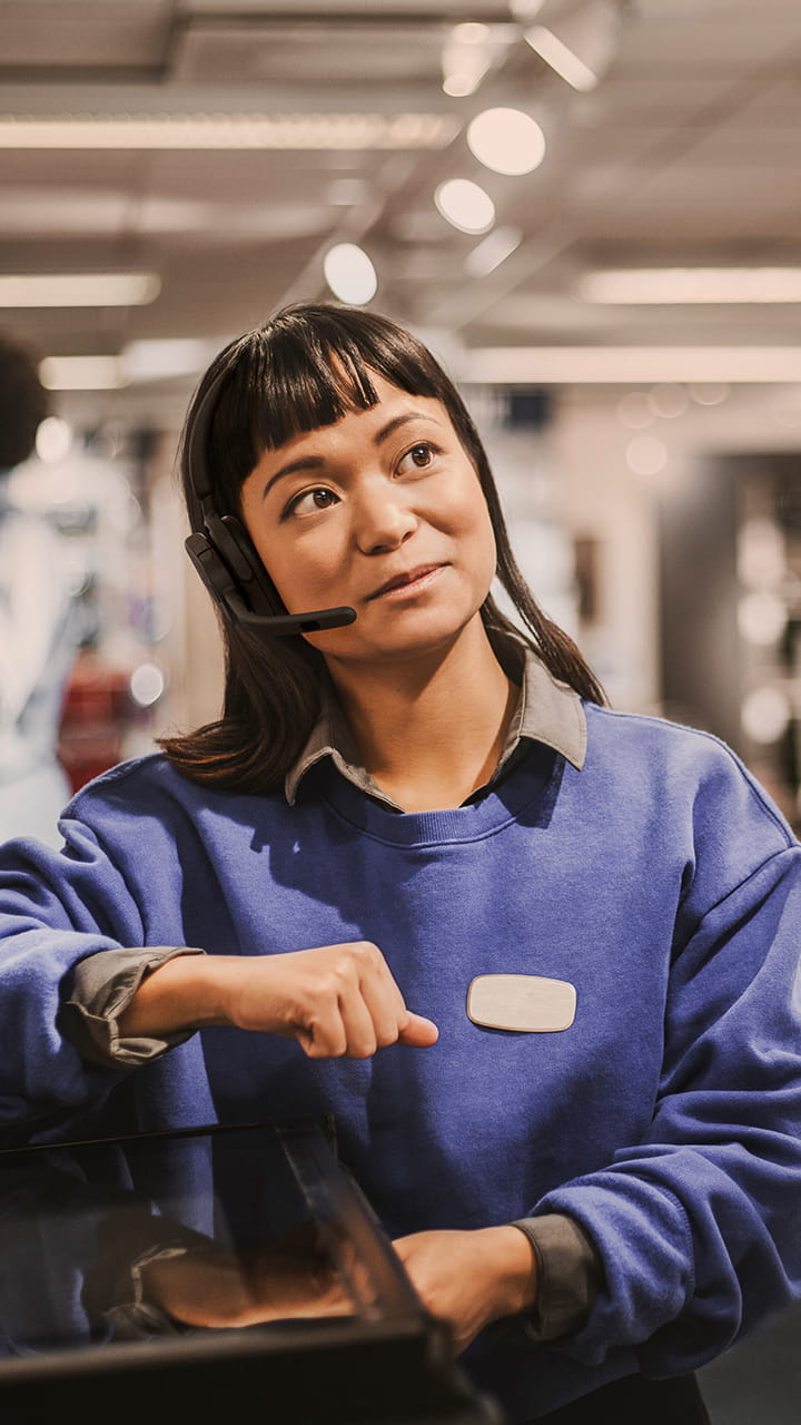Handsfree, Bluetooth-headset bygget for skiftarbeid i detaljhandelen.