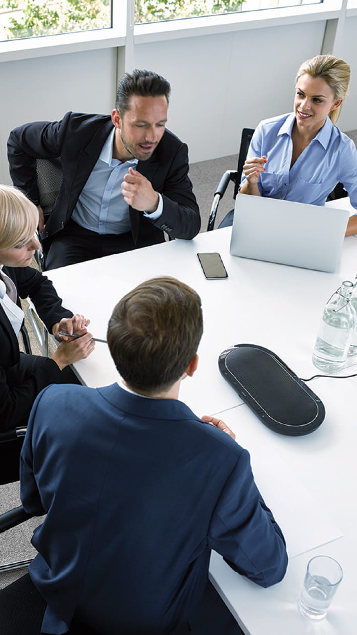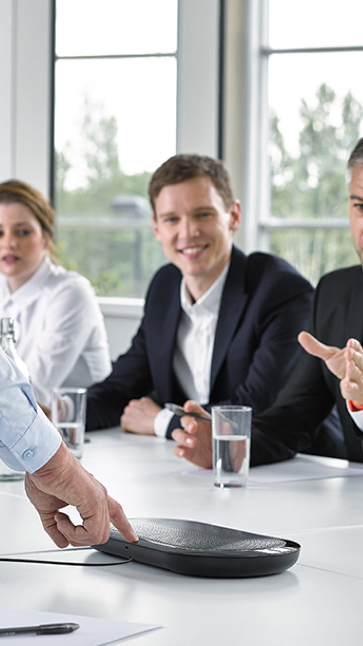 Zet je vergaderingen sneller op dan ooit, via USB, Bluetooth® of 3,5 mm-aansluiting naar laptop of smartphone.