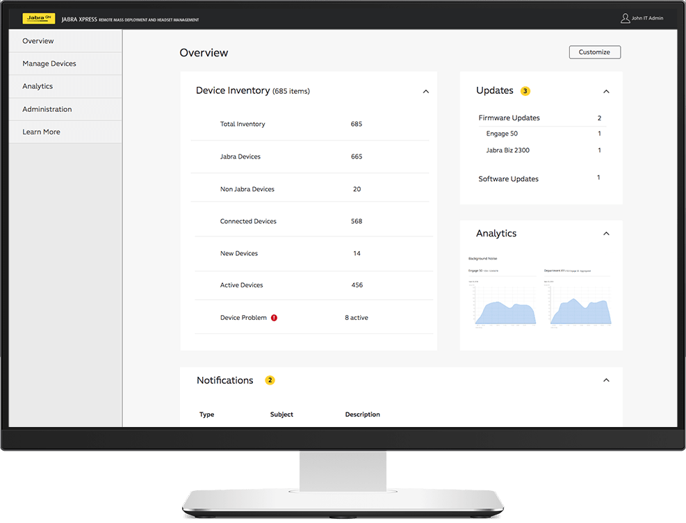 Download Jabra Xpress to your PC or server and get full control of the solution and data flow.